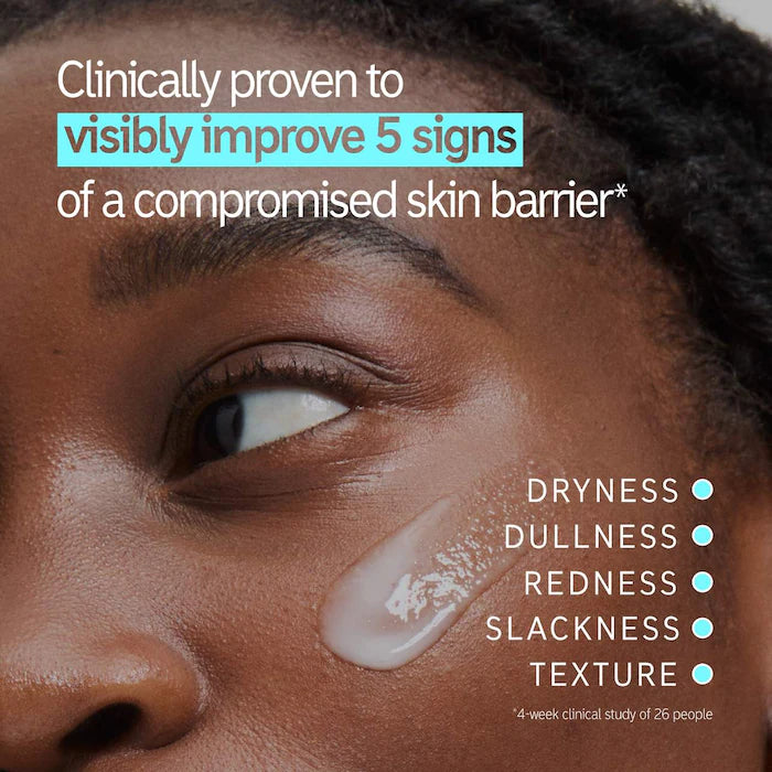 - Visibly improves 5 signs of a compromised skin barrier (dryness, dullness, redness, texture, and slackness) in 28 days