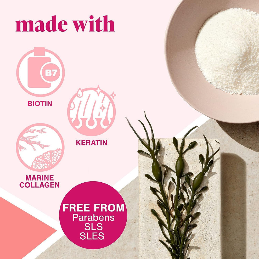 Marine Complex: Fortified with marine collagen and seaweed extract to support thicker, fuller hair.